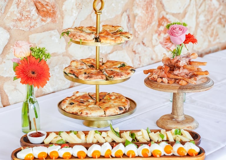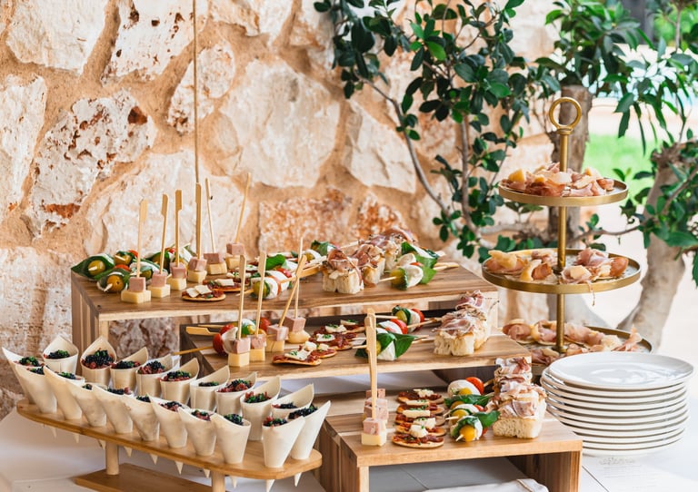 Una opción perfecta para disfrutar de un día fantástico lleno de calidad. Ofrecemos una experiencia gastronómica inolvidable, con una mesa repleta de opciones a tu elección de nuestra variada carta: finger foods, entrantes, platos principales preparados al momento, como paellas, carnes y nuestra especialidad de pasta a la rueda de parmesano con trufa. También contamos con opciones vegetarianas, postres caseros y un servicio opcional de vinos y bebidas. Ideal para grupos de entre 30 y 150 personas, diseñado para sorprender a tus invitados.